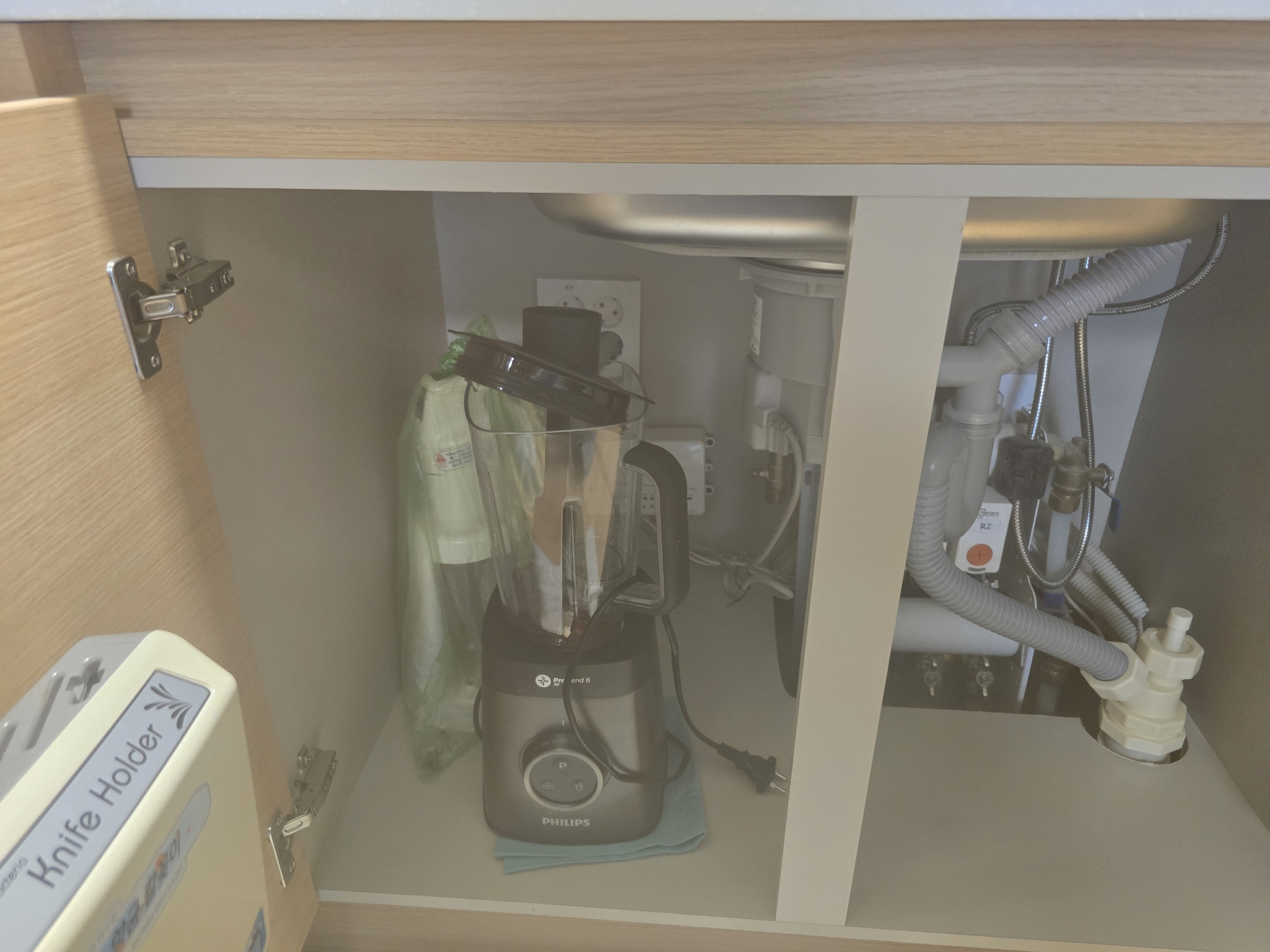 싱크대 하부에는 정수기 본체와 필터가 들어갔는데, 배관 연결과 정리까지 꼼꼼하게 진행되어 공간 활용에도 전혀 불편이 없었습니다.