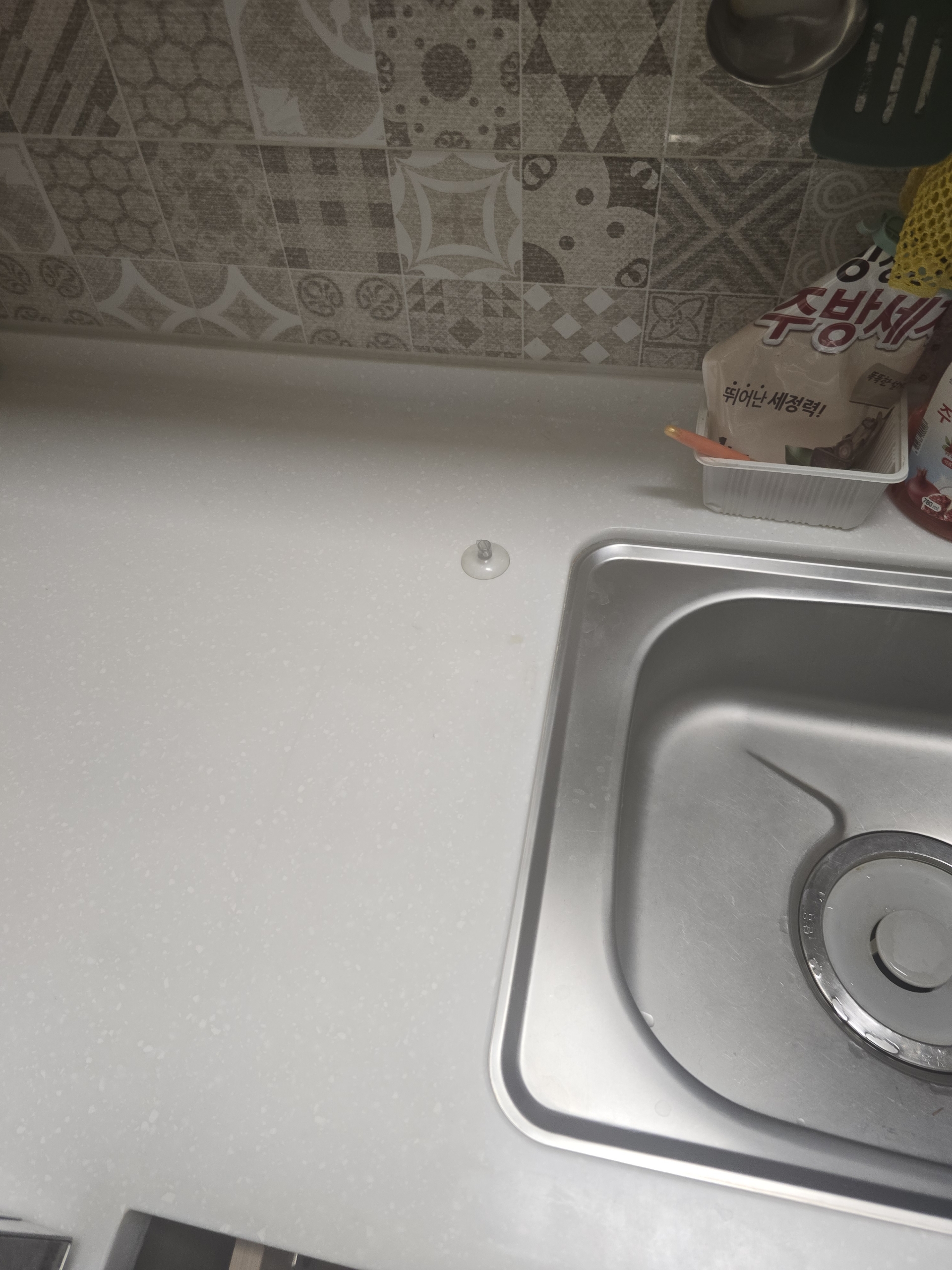 싱크대 상판에는 슬림한 정수기 출수구가 자리잡아 주방 분위기를 해치지 않고 세련된 느낌을 주었습니다.